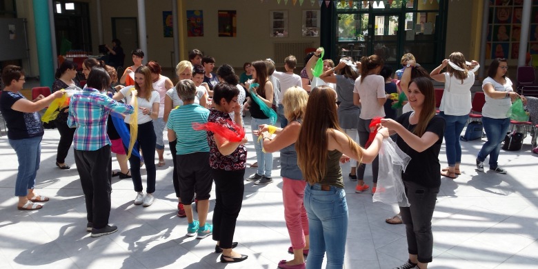In der Krippe läuft das Musizieren anders als im Kindergarten. Feste Zeiten, wann Musik stattfindet, gibt es kaum. Stattdessen ist es gut, in dem Moment ein Lied oder ein Fingerspiel parat zu haben, wenn das Kind „bereit“ ist seine Aufmerksamkeit darauf zu fokussieren. Dann kann ein kleines Liedchen locken, erfreuen und zu ganz neuen Entdeckungen anregen. Das Kind erfährt sich selbst mit seiner Kraft und lernt sich in Bezug auf andere Kinder einzuschätzen und in Kommunikation zu treten. Ganz einfache Materialien, wie Tücher und Bälle, lassen sich spontan und vielseitig einsetzen, um mit Krippenkindern sofort ins Spiel zu kommen. Das Ergebnis sind musikalische Spielereien jenseits der „10 kleinen Zappelmänner“, die den Kindern wie den Erzieherinnen Spaß machen und leicht umsetzbar sind, selbst wenn man vermeintlich völlig unmusikalisch ist! Bitte bequeme Kleidung und weiche Schuhe mitbringen!
